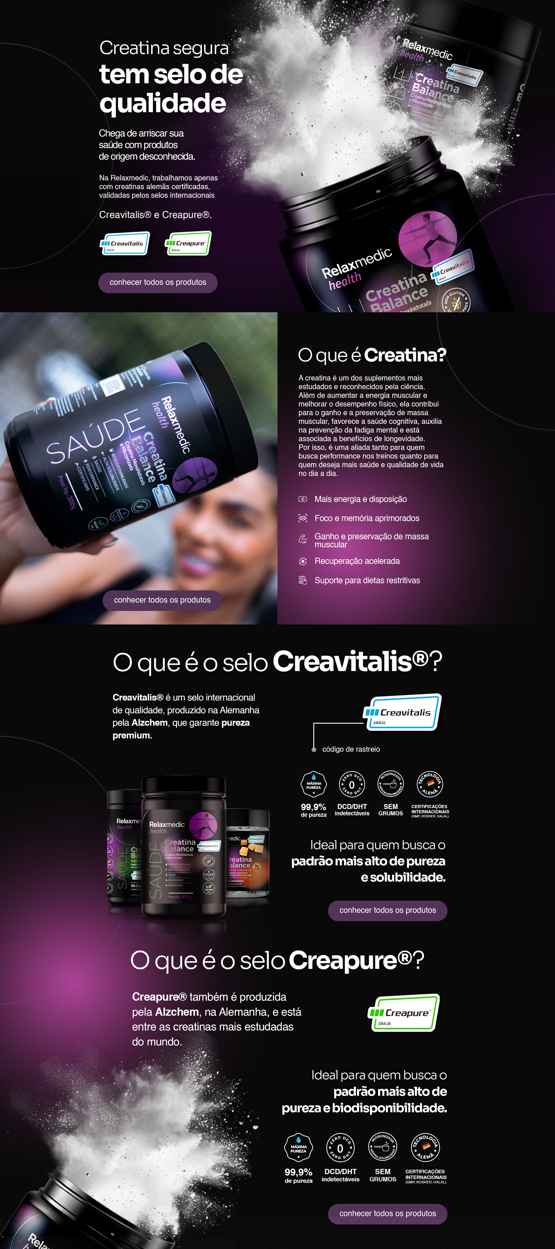 Escolha Relaxmedic, com creatinas certificadas pelos selos Creavitalis® e Creapure®.